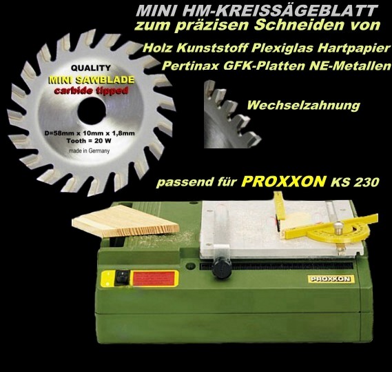 D = 58 mm Bohrung = 10 mm Schnittbreite 1,8 mm Zähnezahl = 20 Wechselzahn Euro 30.--